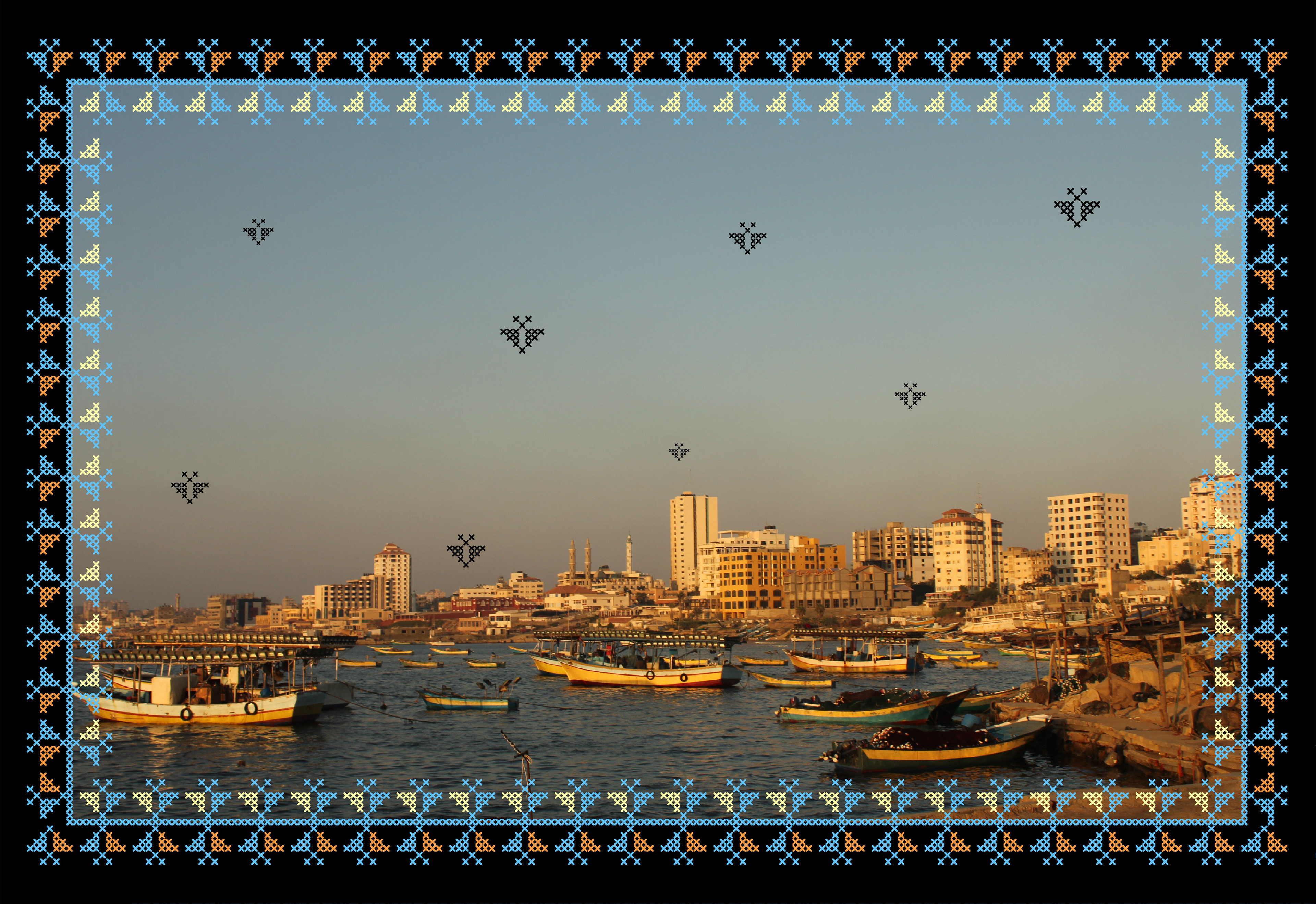 This series weaves together stitching motifs of Gaza with photographs taken by my sister Noor and me during our one-month visit to Gaza in 2012. With some of these images, memory blurs—we no longer remember who took them.