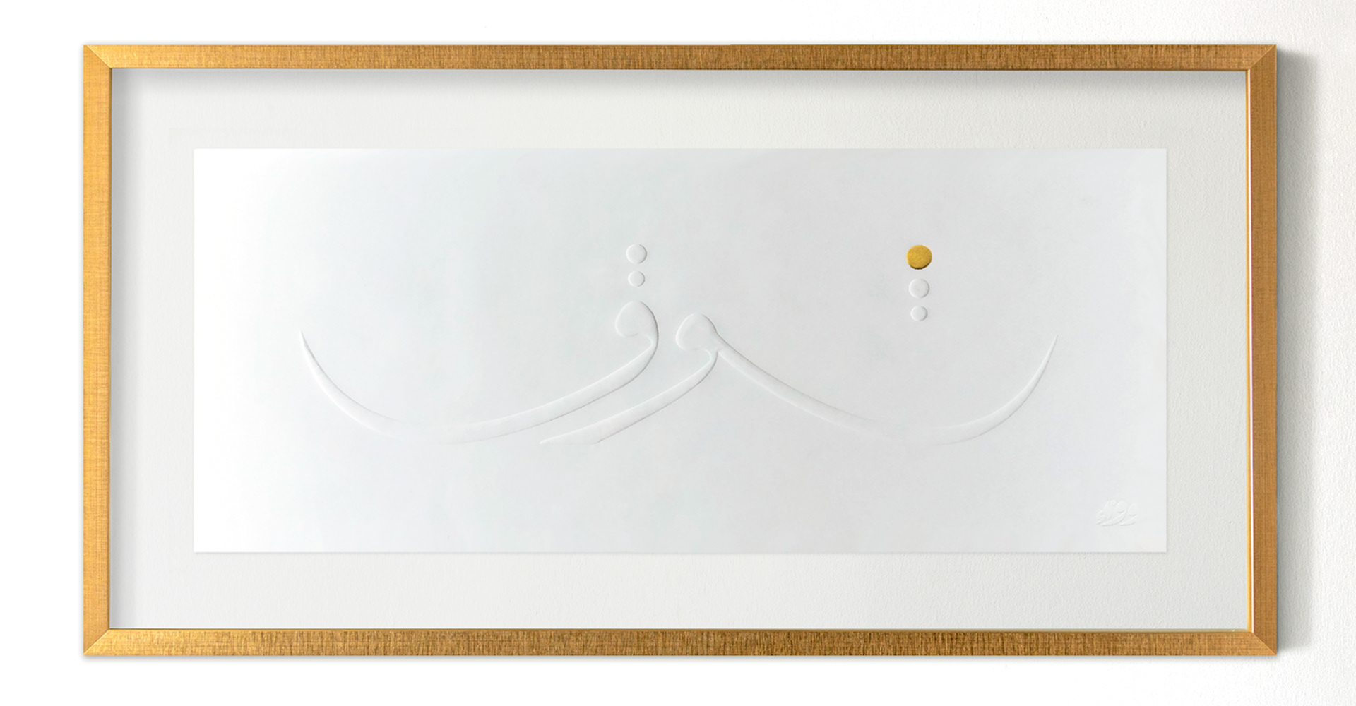 It evokes spaciousness, light, and infinity. The golden dot becomes a sun, a point of union and