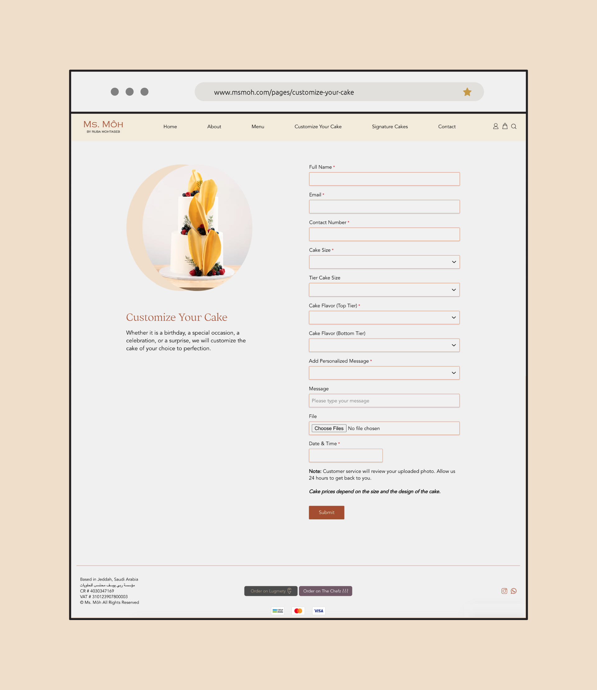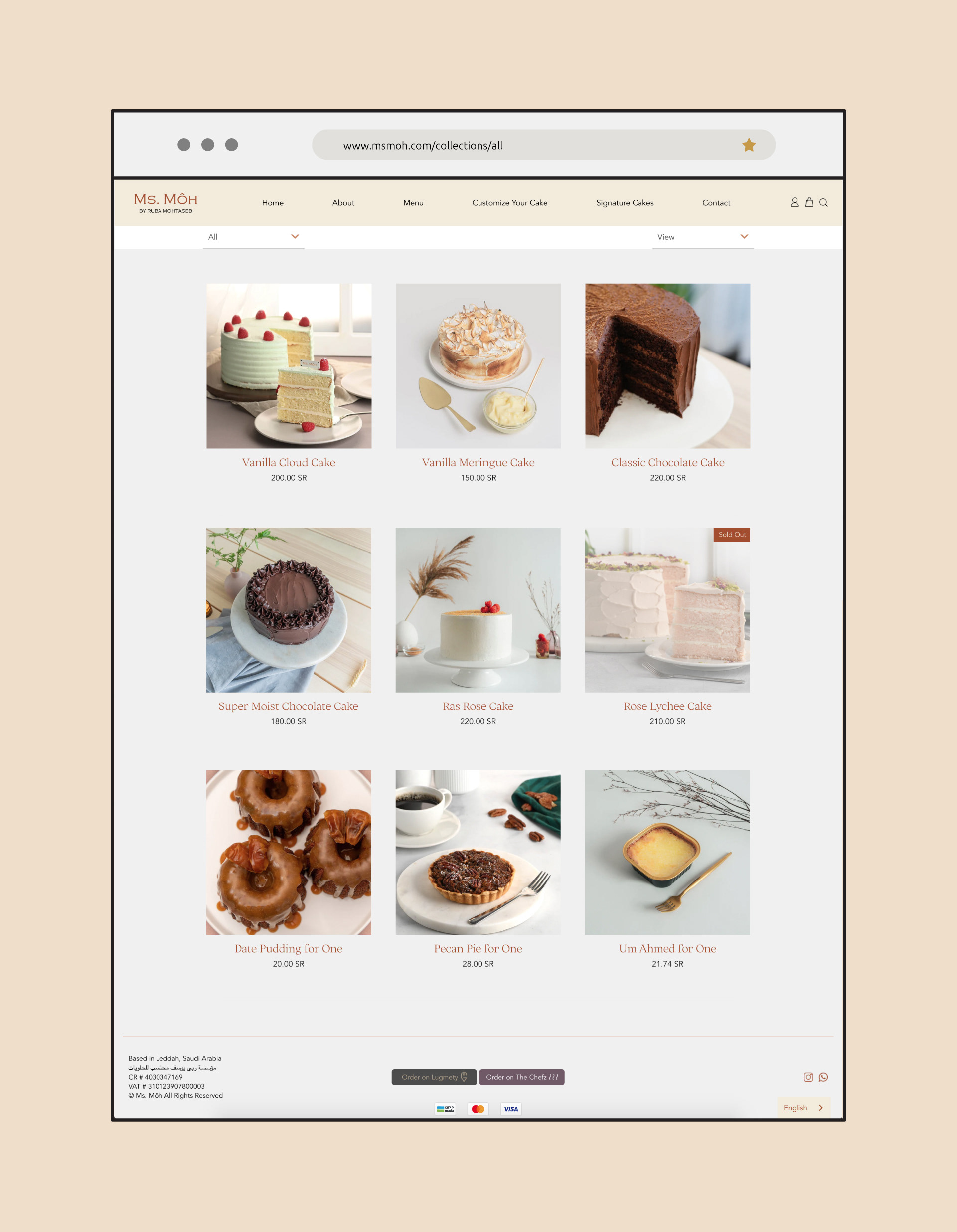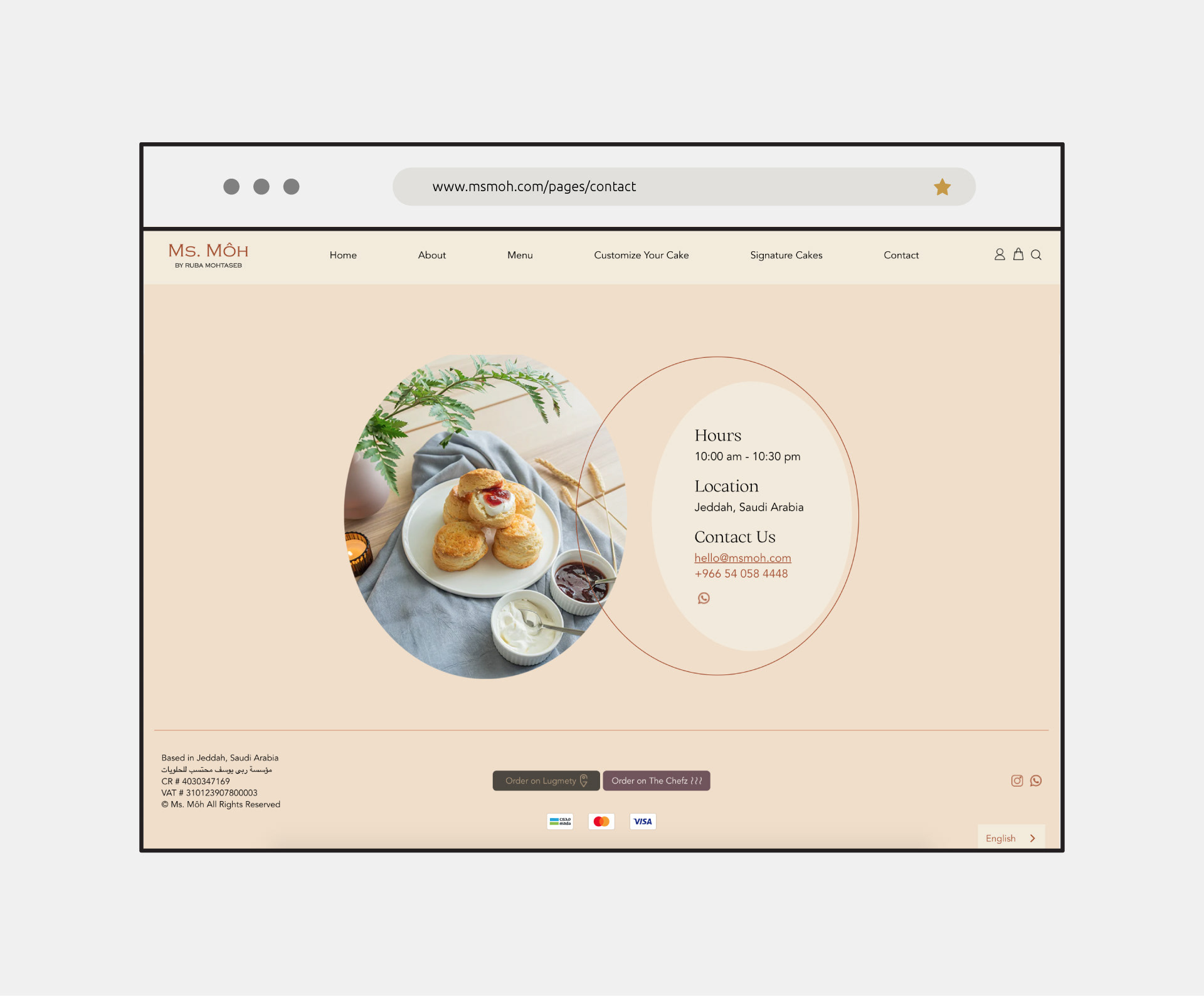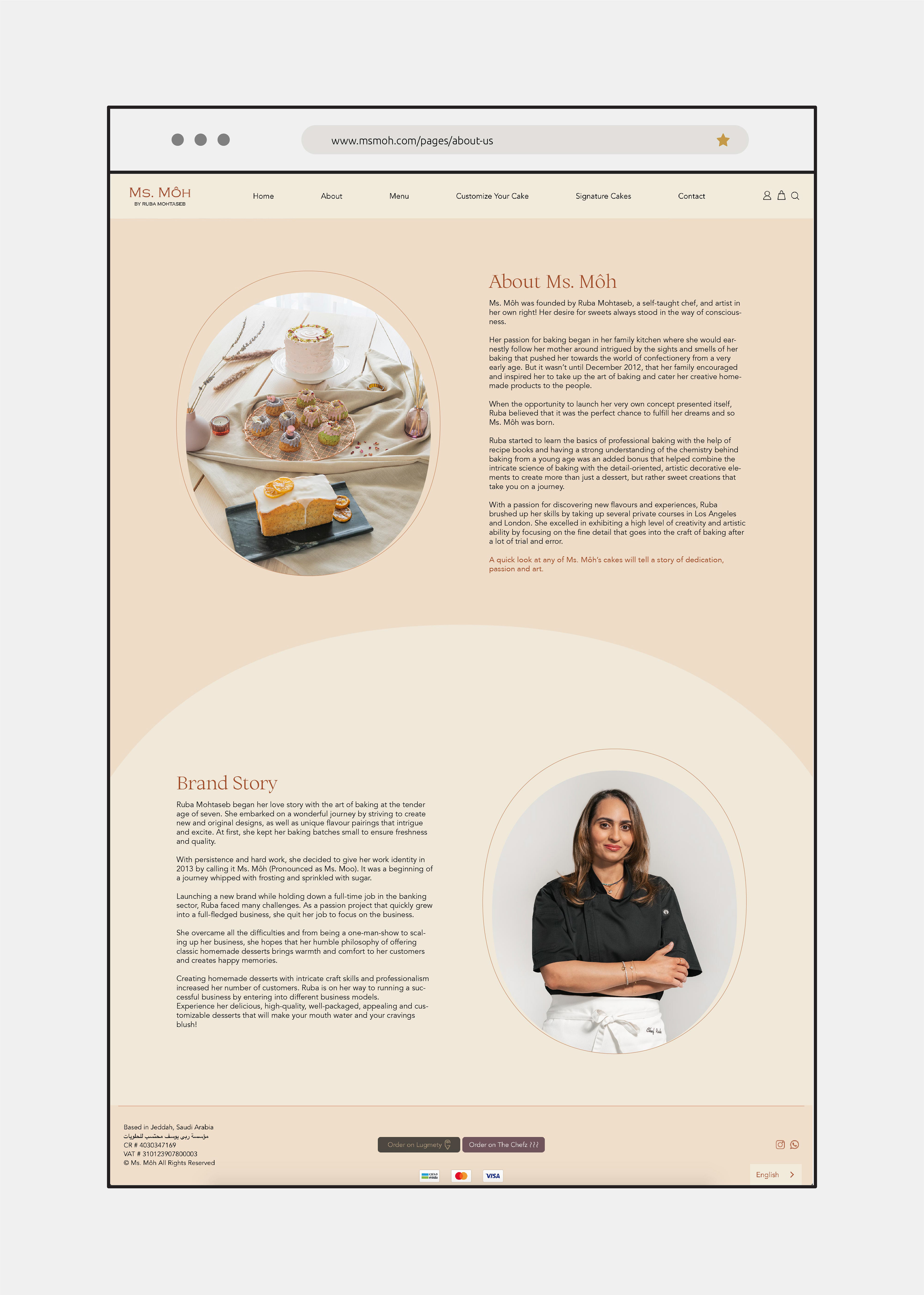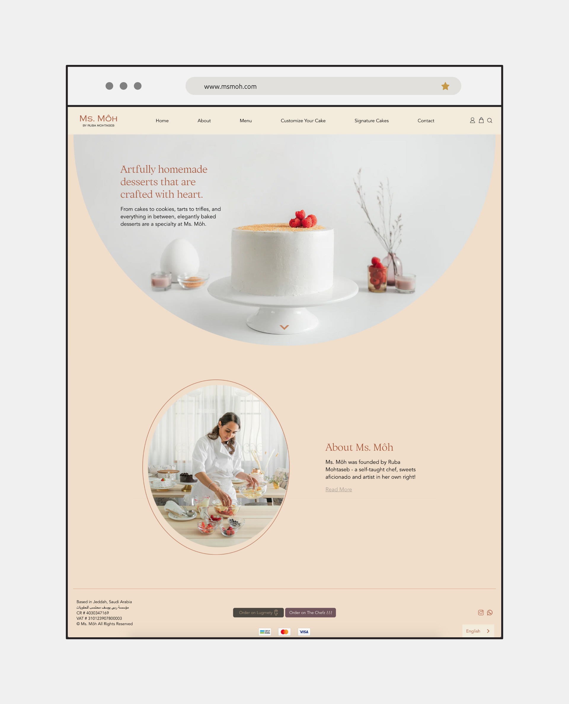 Website and social media content designed for Ms. Moh, a home bakery based in Jeddah.